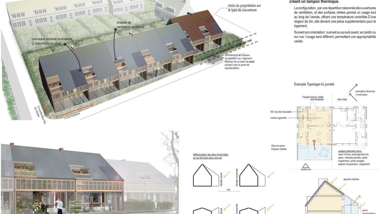 Le projet prend place sur un des sites cibles de Mouvaux (59), le quartier de l'Escalette, une cité jardin des années 1950 comprenant deux cent cinquante maisons T3/T4 en brique porteuse, dont le bailleur principal, Vilogia, envisage la mise aux normes thermiques et la mise à jour de son offre de logements.