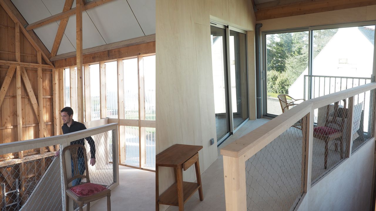 La demande est de composer une maison qui pourrait recevoir un aidant ou une location saisonnière. Le projet se développe en une bâtisse en bois double : une maison de type 3 au Rez-de-chassée et un appartement de type 3 à l'étage. Un grand jardin d'hiver permet de faire la jonction entre les deux programmes et d'organiser les espaces de renvoi nécessaires aux usages de bord de mer.