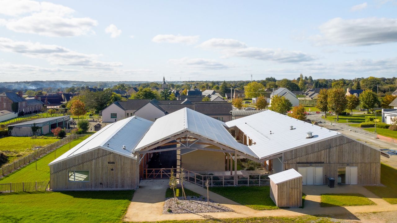 Commune rurale d’Ile-et-Vilaine, la ville de Baulon a souhaité rassembler ses deux écoles sur un même site, en y associant un nouveau restaurant scolaire. Ce regroupement s'inscrit dans un mouvement de resserrement des équipements de la commune autour d'un nouvel espace public piéton. Le préau, espace central du projet, accueille et articule l'ensemble des espaces de vie de l'école et devient l'icône de ce nouveau bâtiment, permettant même d'accueillir des évènements à l'échelle de la commune, à l'image d'une halle de village.