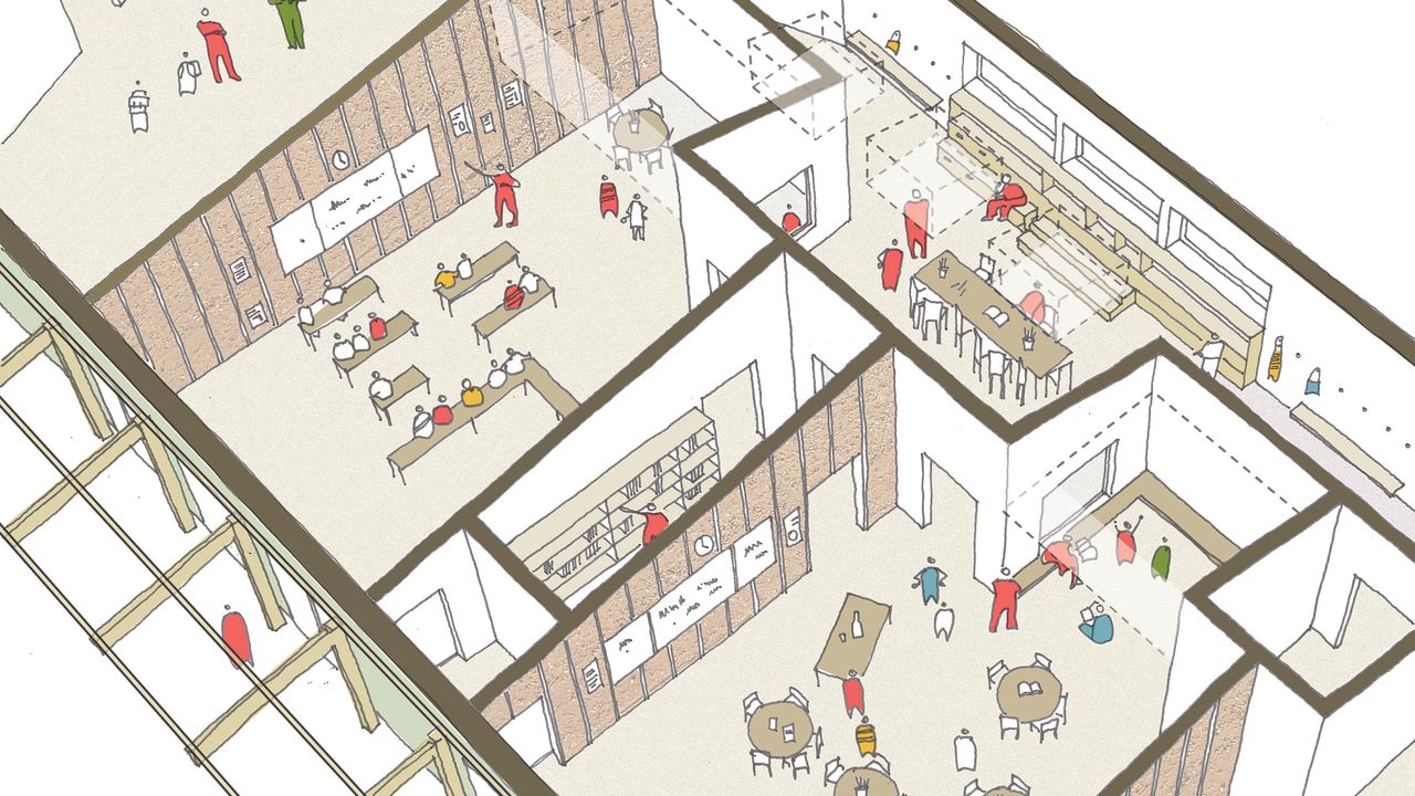 Des sous-espaces dans les salles de classe permettent d'accueillir des temps plus calmes (coin lecture par exemple). Des sanitaires partagés (adossés à un espace de rangement) favorisent l'autonomie des enfants. Des circulations élargies permettent des espaces partagés en bonus.