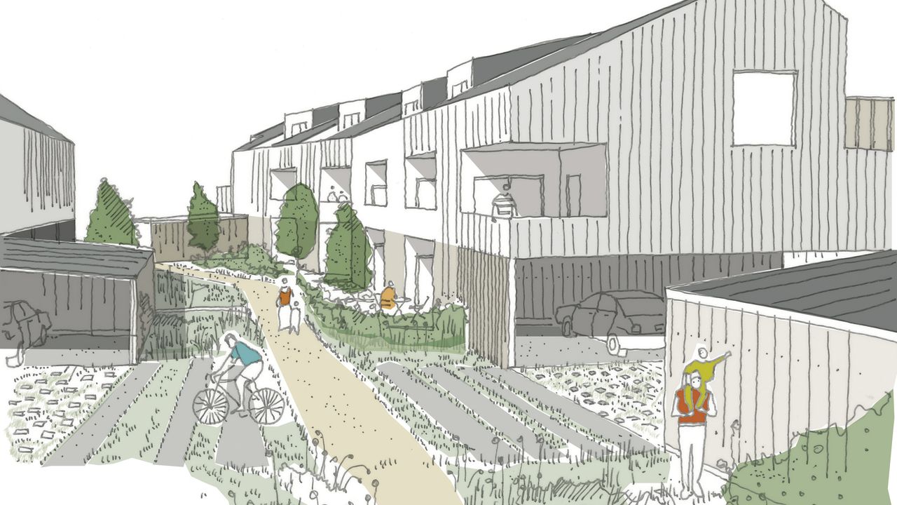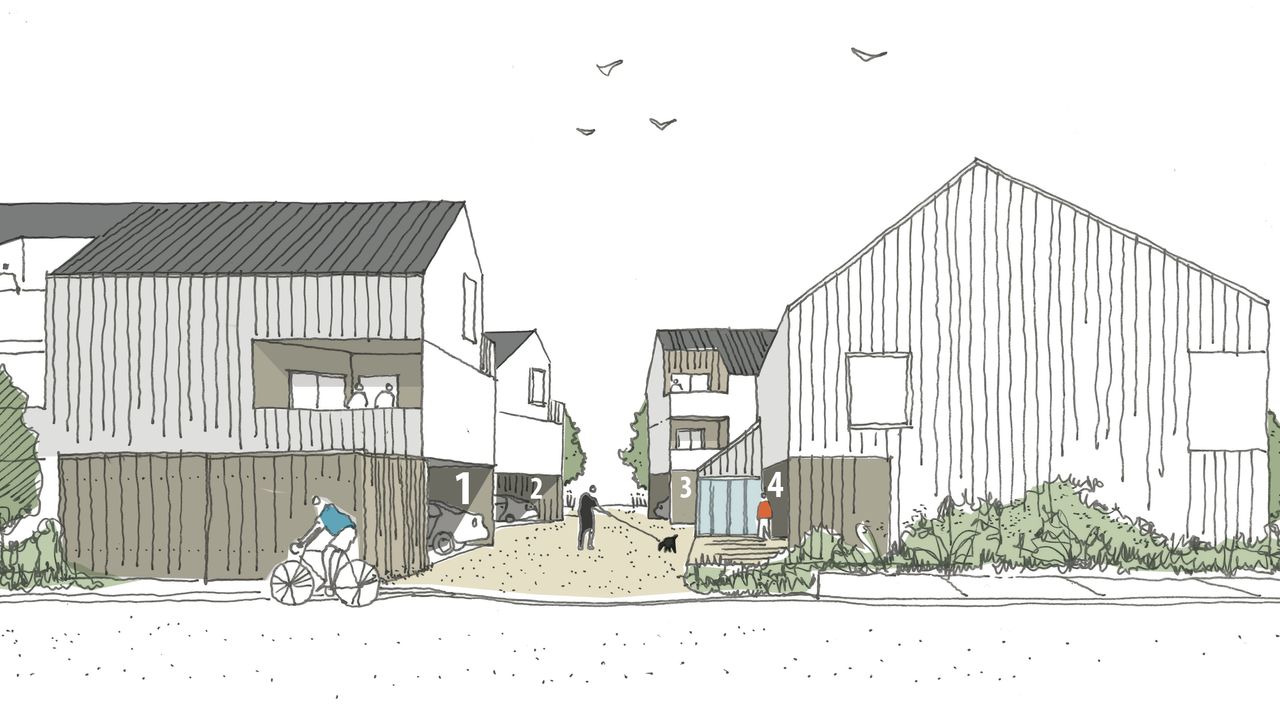 De gabarit d'un niveau plus combles habitables, le projet déploie trois bâtiments dans la longueur de la parcelle : un premier sur la rue, avec huit logements, un deuxième côté prairie humide contenant seize logements, et un troisième contenant six logements.